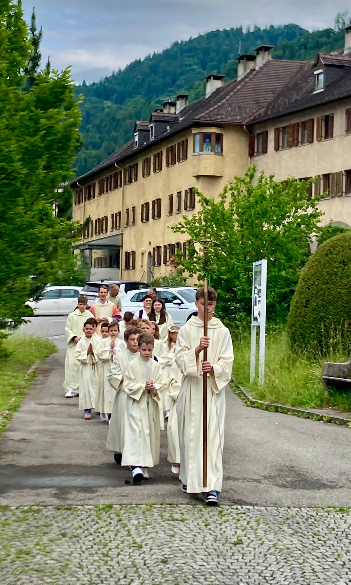 Kaplan Jakob feierte mit uns den Gottesdienst, den die Erstkommunionkinder musikalisch gestaltet haben. Begleitet von den Familien Rüdisser und Schwald sangen sie ihre Lieblingslieder.
