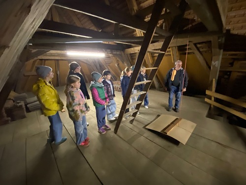 Mädchen erkunden den Kirchturm und geheime Winkel der Pfarrkirche