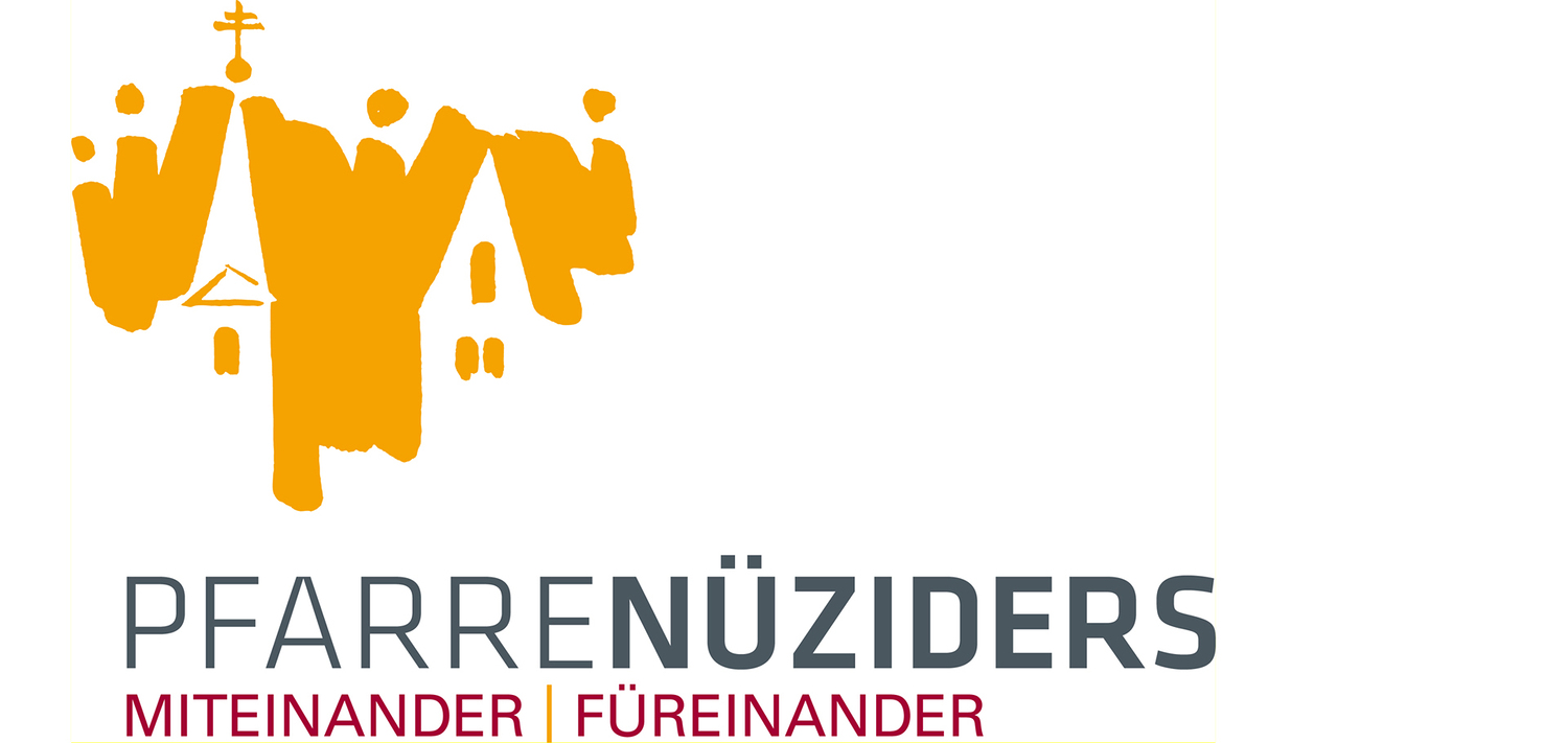 Auf der rechten Seite ist der Turm der St. Vinerkirche zu erkennen. Das Gebäude kann auch für alle Nüziger Häuser stehen und bildet einen Kontrapunkt für die im Ort lebende Gemeinschaft, die als umschlossene und umgebende Personengruppe erkennbar ist. Das Symbol der Gemeinschaft kommt auch im Wortpaar „Miteinander - Füreinander" zum Ausdruck. Miteinander den Glauben zu leben, bedeutet Gemeinschaft zu erleben. Im Füreinander-Dasein werden wir Gemeinde Jesu Christi. Im „Miteinander - Füreinander“ verbinden sich zwei zentrale Linien neutestamentlicher Theologie: Einerseits ist die Liebe der Christen untereinander Abbild der Liebe Gottes zu den Menschen; und andererseits erfüllen wir im Engagement für den anderen den Willen Gottes.